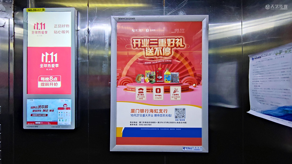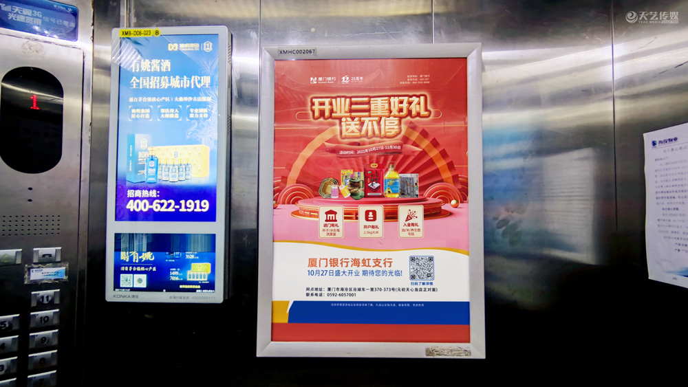 此次廈門銀行海虹支行選擇與天藝傳媒進行戶外媒體投放的合作,投放海滄區(qū)(以海滄的生活區(qū)、海虹支行周邊區(qū)域為主)的多個戶外廣告媒體,包括公交候車亭媒體、電梯框架廣告、社區(qū)公告欄媒體及社區(qū)出入口的道閘媒體等。