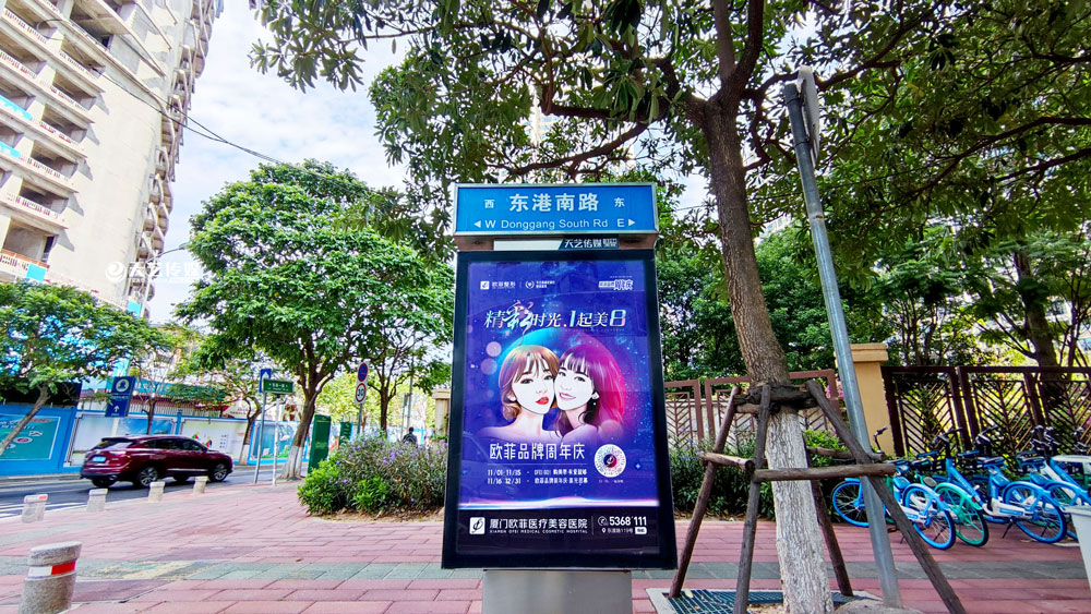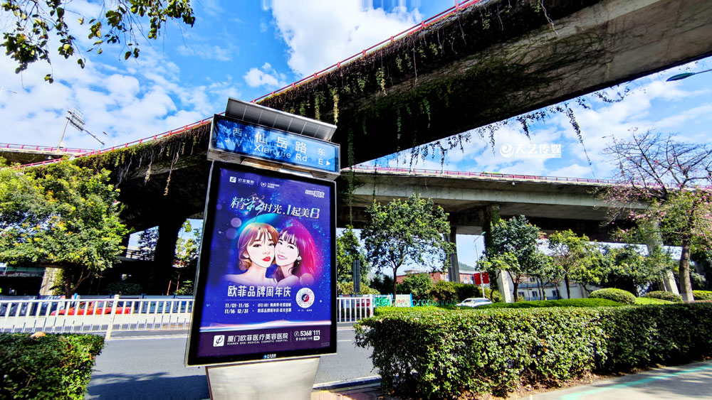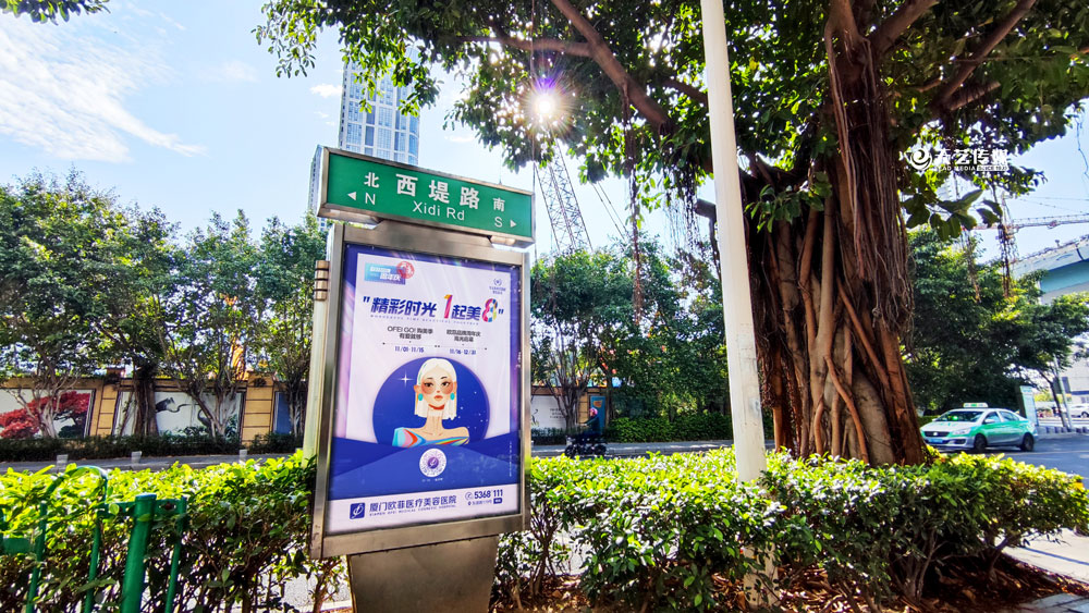 值此歐菲品牌周年慶之際,歐菲品牌在廈門(mén)島內(nèi)各個(gè)黃金路段(仙岳路、嘉禾路、湖濱南路、鷺江道、環(huán)島干道、東渡路等)投放超過(guò)400座城市路名牌和200座社區(qū)快遞柜媒體(集中在中高端人群住宅區(qū)、居住率較為密集的生活居住區(qū))。