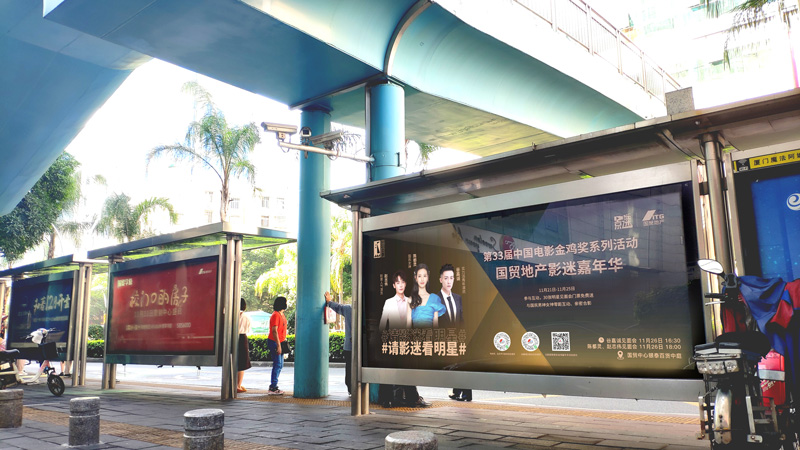 隨著本次金雞盛典系列活動的到來,廈門處處充滿了金雞電影盛會舉辦的氣氛。作為連接廈門各個(gè)主干道的公交網(wǎng)絡(luò),遍布城市大街小巷的公交候車亭媒體,以#影迷嘉年華#、#請影迷見明星#等為主背景畫面,全城展示。