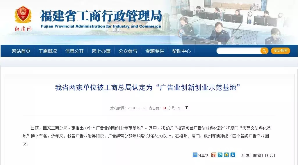 日前,在國(guó)家工商行政管理總局辦公廳出臺(tái)的《關(guān)于進(jìn)一步推進(jìn)廣告業(yè)創(chuàng)新創(chuàng)業(yè)有關(guān)工作的通知》(辦字【2017】209)中,由廈門市天藝傳媒股份有限公司創(chuàng)辦的“天藝文創(chuàng)孵化基地”被評(píng)定為國(guó)家級(jí)廣告業(yè)創(chuàng)新創(chuàng)業(yè)示范基地,成為廈門市2017年度唯一一家獲評(píng)廣告業(yè)創(chuàng)新發(fā)展優(yōu)秀典型企業(yè)的單位。